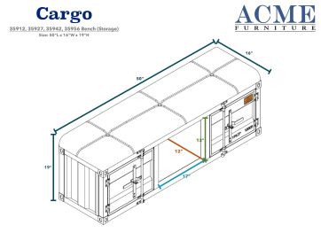 ACME Cargo Bench (Storage), Gray Fabric & Gunmetal 35927