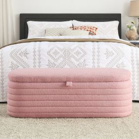 46.9" Width Oval Storage Bench with Gold Legs,Teddy Fabric Upholstered Ottoman Storage Benches for Bedroom End of Bed