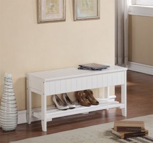 Wooden Entryway Shoe Cabinet Living Room Storage Bench with White Cushion (Color: as Pic)